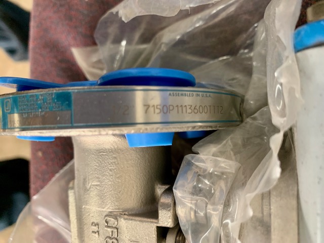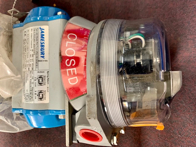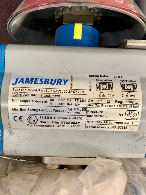 Unused Condition Jamesbury 1/2″-150# ball valve, air operated, stainless material; type 7150P1113600TTT2, with Jamesbury actuator type VPVL100 SR 4/5BC, and Quartz switch model QN2SC02SRA.