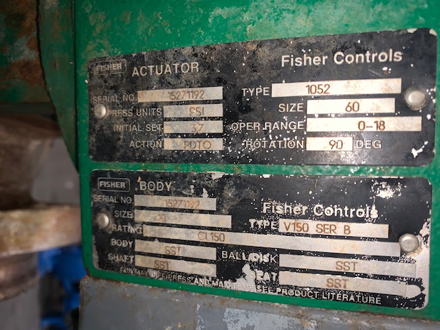 Fisher 10″ HMW V150Â SER B V-Ball Control valve, stainless steel; actuator 1052/60