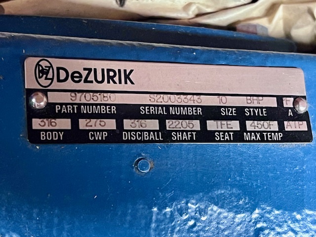New Storeroom Spare 10″ Dezurik BHP Butterfly Valve, 316SS