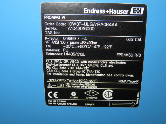 Unused Condition 14″-150# Endress Hauser Magnetic Flowtube