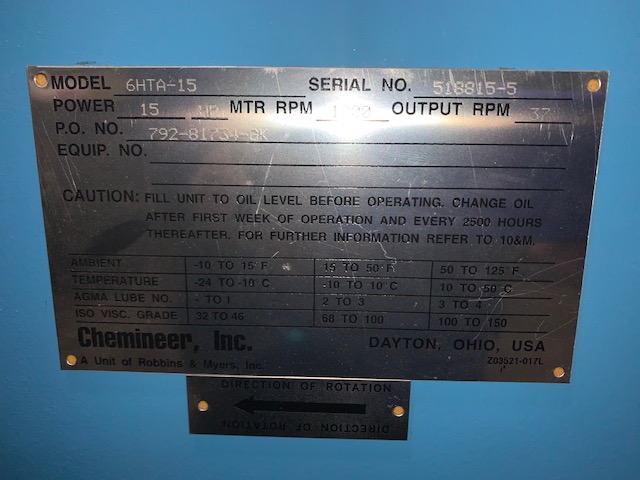 Unused Condition! Chemineer 15hp agitator mixer, model 6HTA-15; Quantity Available: 2