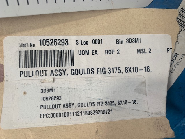 18″ Goulds 3175 back pullout with impeller 18″ aprox in 316SS; Back plate is in DI material