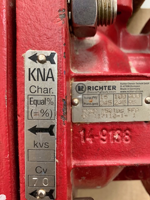 Unused Condition Richter 2″-150# Ball Valve , air operated, Made in Germany!