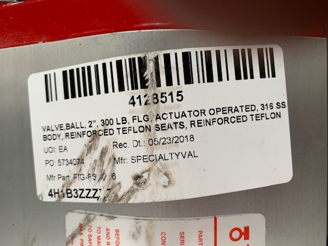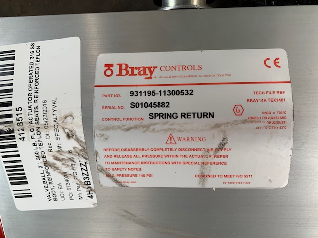 New Storeroom Spare 2″-300# ball valve, air operated, stainless steel