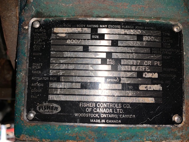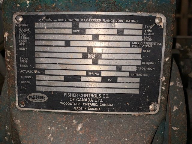 Fisher 8550 butterfly valve size 2″-600# stainless material; actuator 1052/30