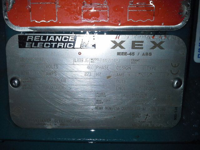 Reliance Electric AC Motor type XEX, 200 hp, 1190 rpm, 460 v, frame 449T, amps 223, 60 hz
