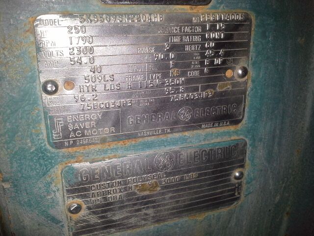 General Electric 250hp, 1800rpm, 2300v, frame 509LS AC motor