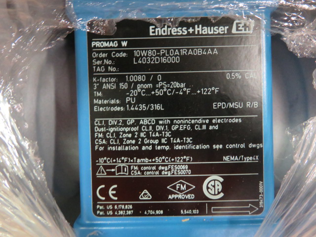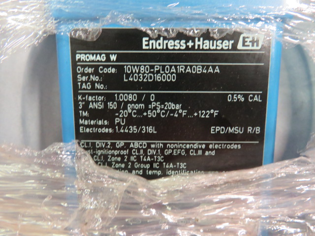 Unused Condition Endress Hauser 3″-150# magnetic flowmeter