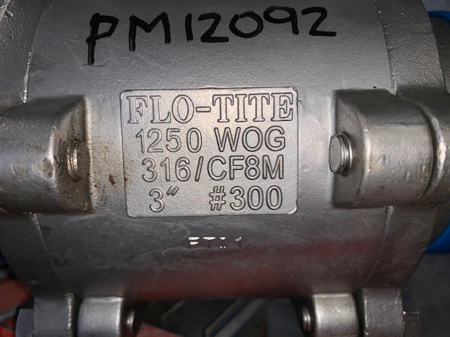 Unused Condition 3″-300# Flo-tite Ball Valve, 1250 WOG, 316/CF8M