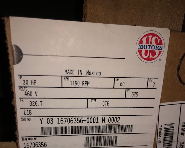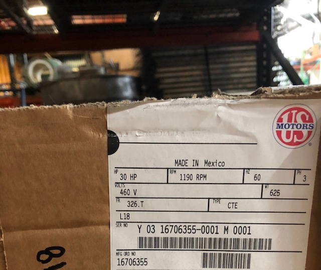 Unused Condition 30hp 1190rpm 460v frame 326T US Motors