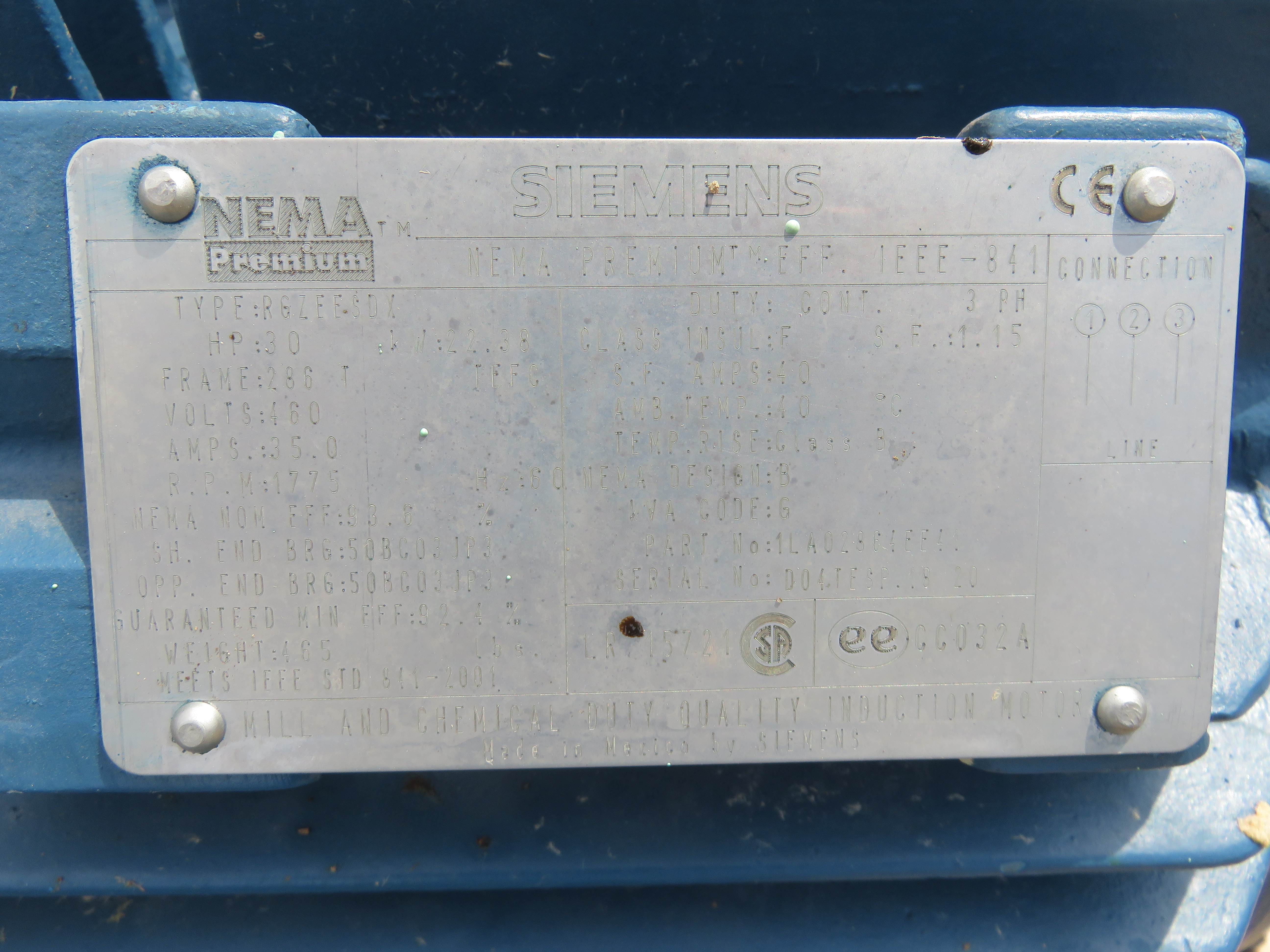 Siemens 30hp, 1800rpm, 460v, frame 286T