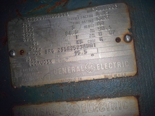 General Electric / GE AC motor, 300hp, 1195rpm, 2300v, frame 509L