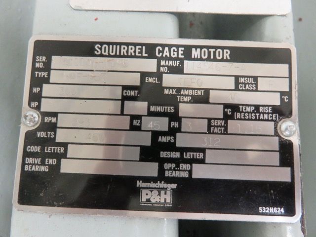 New P&H Squirrel Cage Motor 300hp, 893rpm, 460v, type HAF-587, 45Hz, 3 phase, 312 Amps