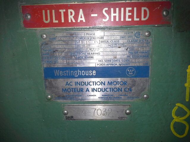 Westinghouse 300 hp, 4000v, 1179 rpm AC Induction motor, used condition