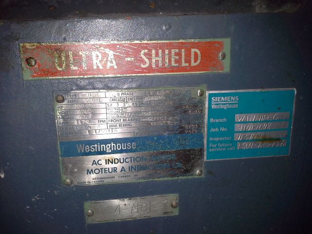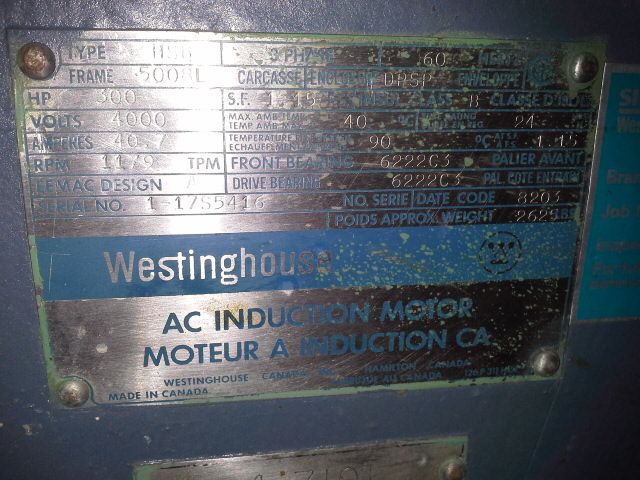 Westinghouse 300 hp, 4000v, 1179 rpm AC Induction motor, used condition