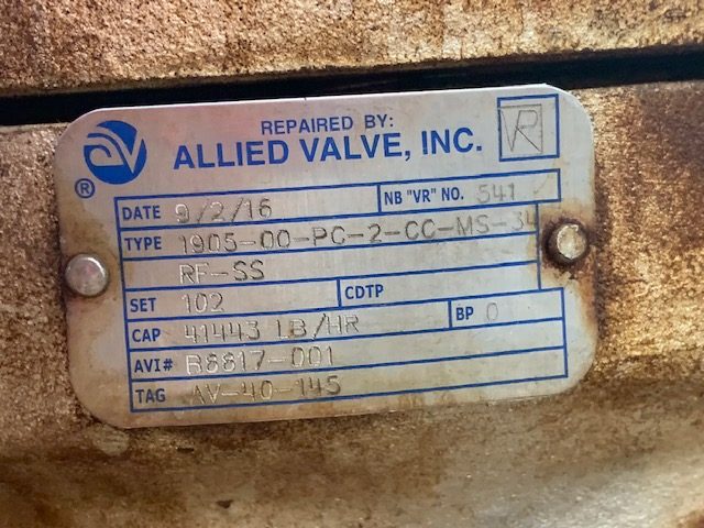 Repaired in 2016 Consolidated 4×6 safety relief Valve