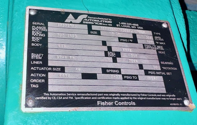 Fisher 8560 Butterfly Valve, Size 4″ Class 300#