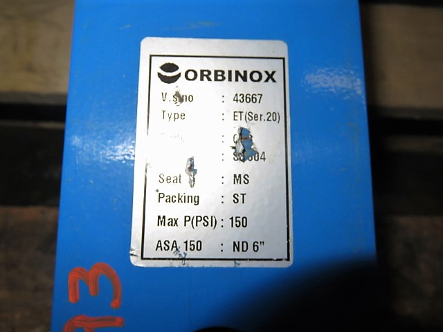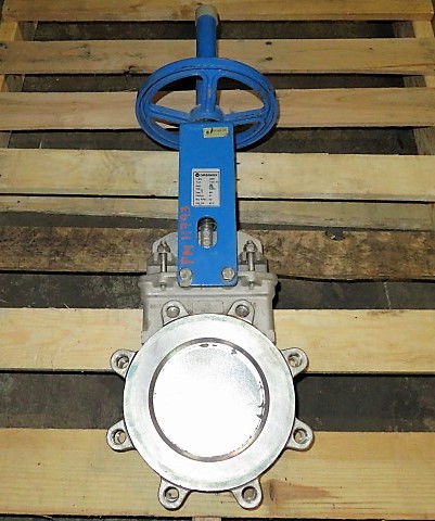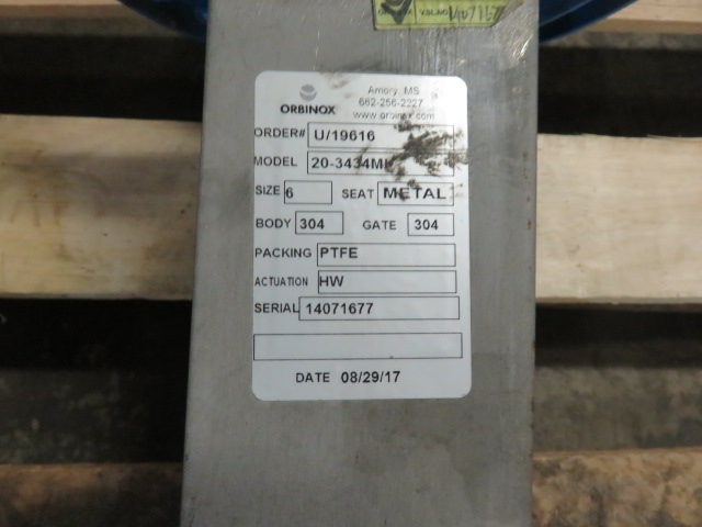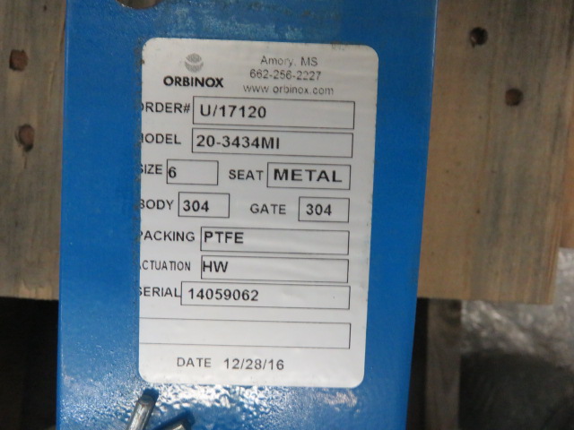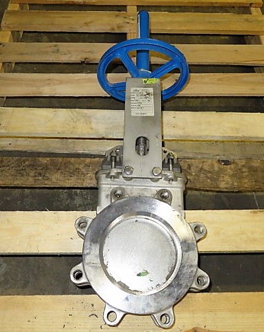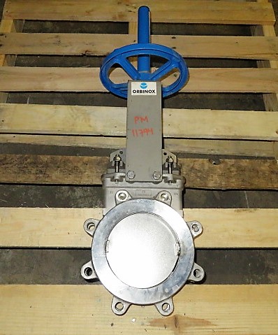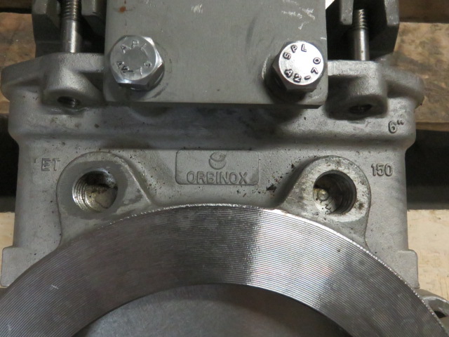 Unused Condition Orbinox 6″-150# knifegate valve hand wheel operated; material 316 stainless