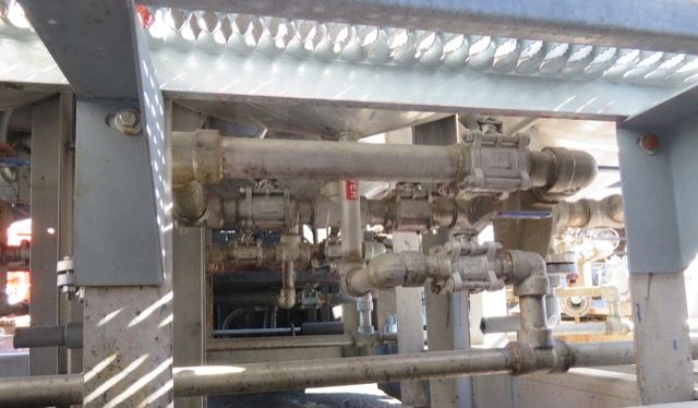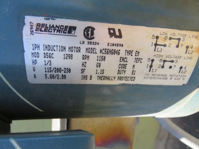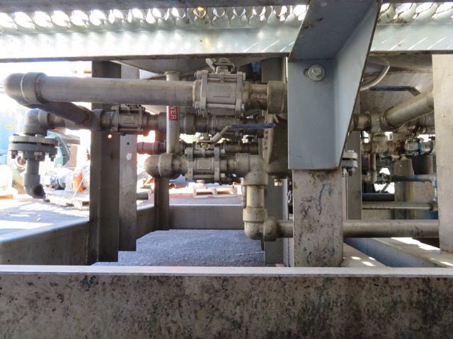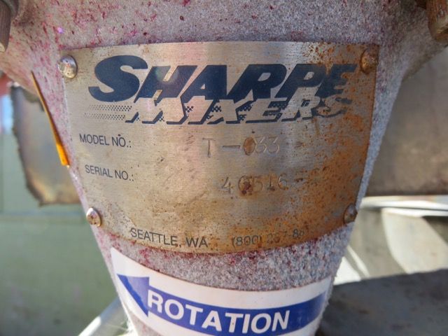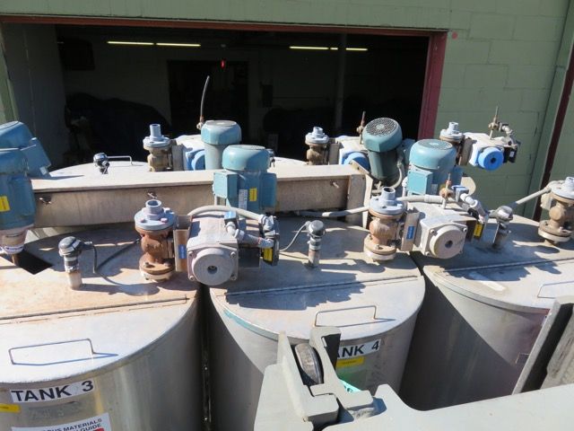 Used-Mason Steel Tank, Approximately 2,500 Gallons, Stainless Steel, Vertical. Approximate 96″ diameter x 74″ straight side, dished top & bottom. Internal rated 14.9 psi at ambient temperature. Off center top entering Lightnin agitator, model 73-C-5, serial# 79073421, ratio 31.3, output rpm 56. Approximate 2-1/2″ diameter shaft with a 4 blade turbine, driven by a 5hp, 3/60/230/460 volt, 1740 rpm motor. (3) 48″ Tall side wall baffles. Openings top 1-1/2″, 2″, 4″, 10″ 18″ man way with cover, 3″ center bottom outlet. Mounts on carbon steel side lugs. Serial# T-4483-9A, built 1980.
