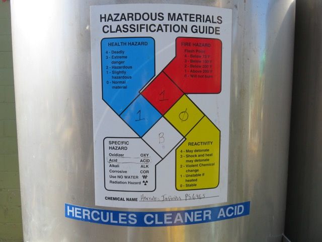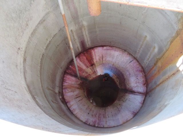 Used- Tank, Approximately 20,000 gallon, Stainless Steel, Vertical. Approximately 144″ diameter x 300″ straight side, dished top, sloped bottom. (4) Sidewall baffles, side bottom man way with cover, side bottom outlet. No manufacturers tag visible.