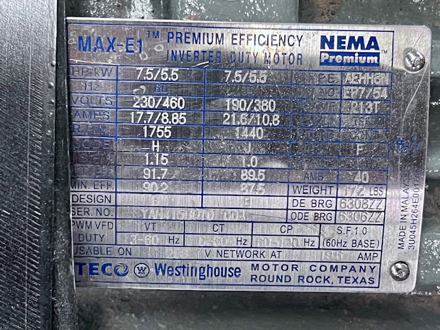 New Storeroom Spare 7.5HP Teco Westinghouse AC Motor