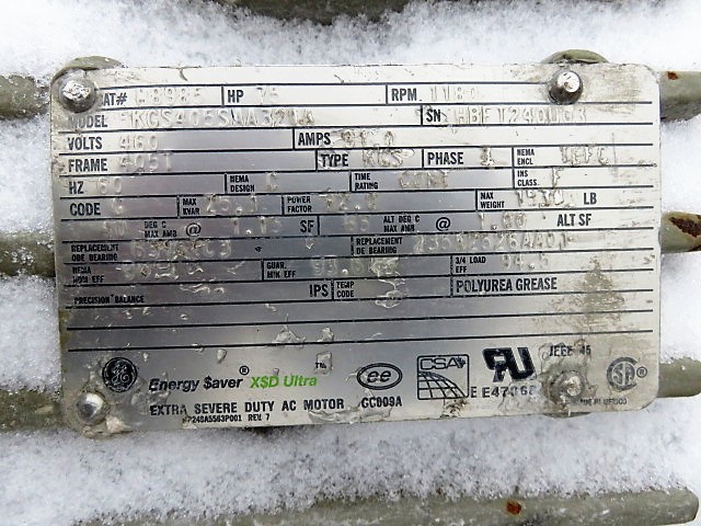 75hp, 1200rpm, 460v, 405T, TEFC GE AC Motor