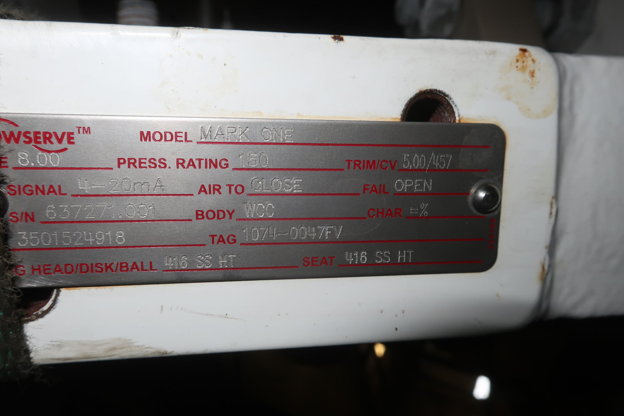 Unused Condition Flowserve Control Valve 8″-150# air operated; trim 5.00 cv457; signal 4-20mA, Air to CLOSE Fail OPEN, s/n 637271.001, body WCC, Char =%, Head/Ball/Disc: 416SSHT; Seat:416SSHT
