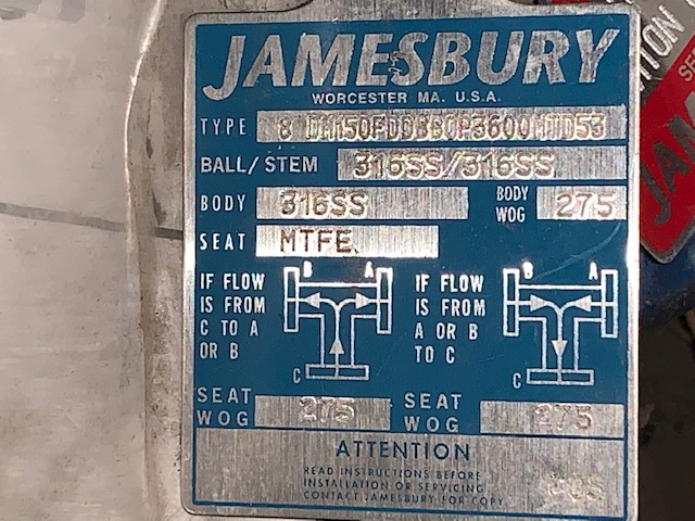 Unused Condition Neles Jamesbury 3 way ball valve size 8″ with actuator and positioner