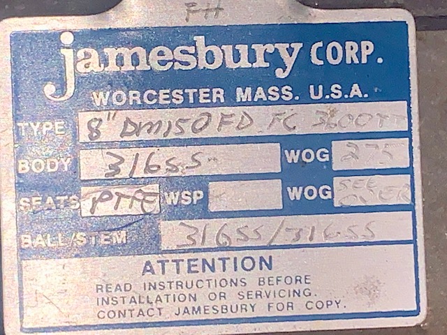Remanufactured or New Storeroom Spare 3 way 8″ Jamesbury Valve, stainless steel