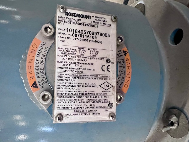 New Storeroom Spare 8″ Rosemount Magnetic Flowtube