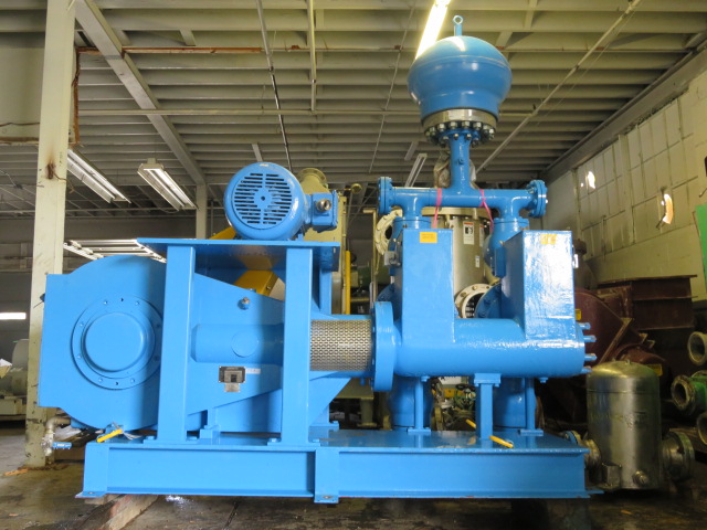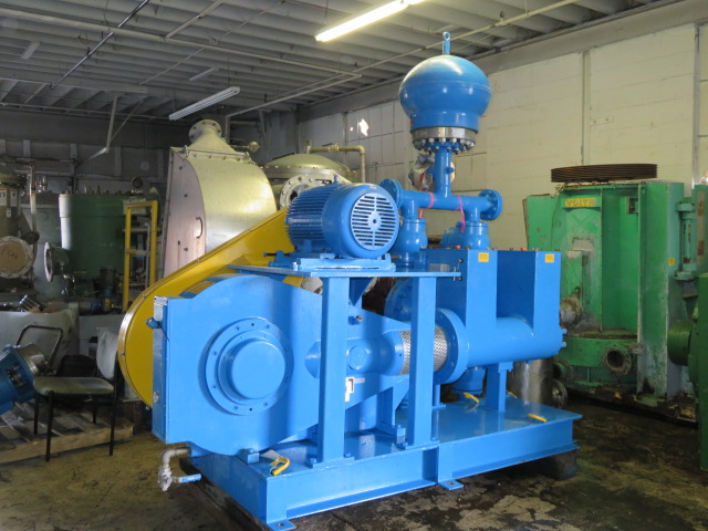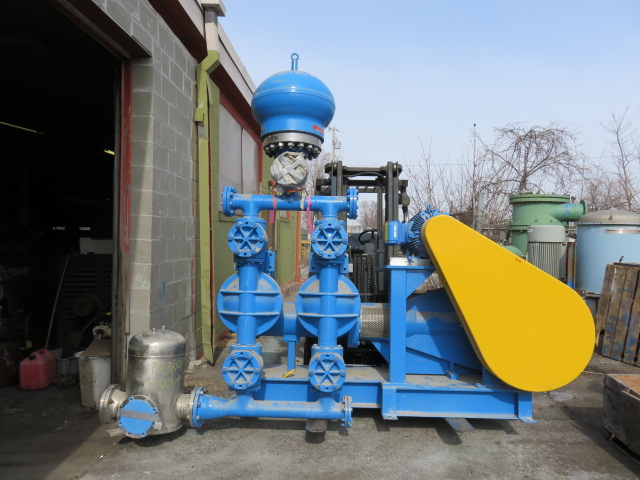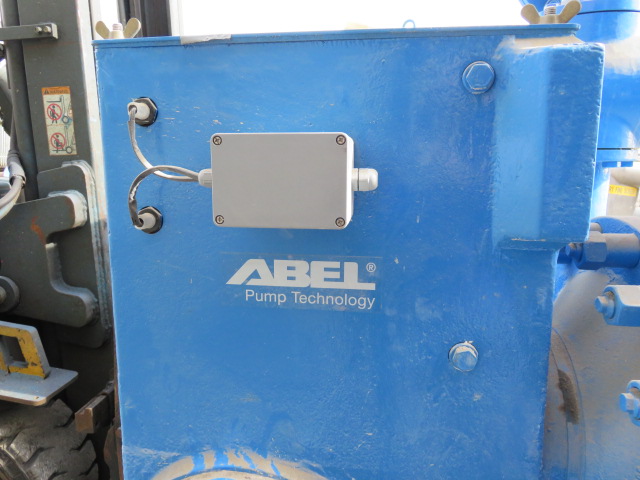 New surplus ABEL hydraulic membrane pump model HMD-E-80-0500-ED-5100-489-01, with base and motor; capacity 87 gpm, piston diameter 170mm, pressure 470 psi, stroke rate 42 min, oil 8.72 gal, kin vis 220 cst, year built 2010