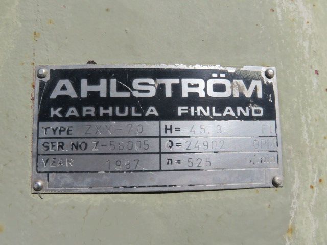 Ahlstrom / Sulzer Karhula Finland Fan pump model ZXX-70, material 316ss, year 1987, Made in Finland, 45.3 ft HD, 24,902gpm, 525rpm