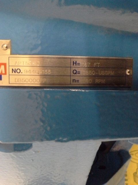 Sulzer pump model APT 53-10, rebuilt condition, 3850 usgpm, 167 ft HD, 1180 rpm, material 316ss