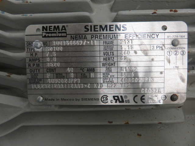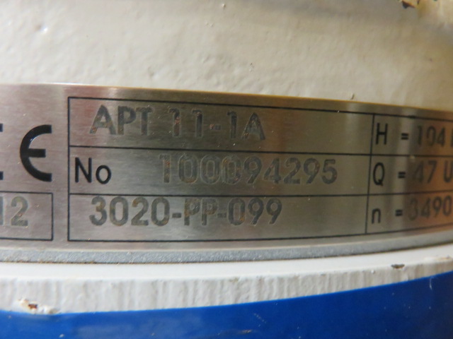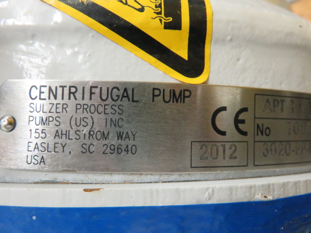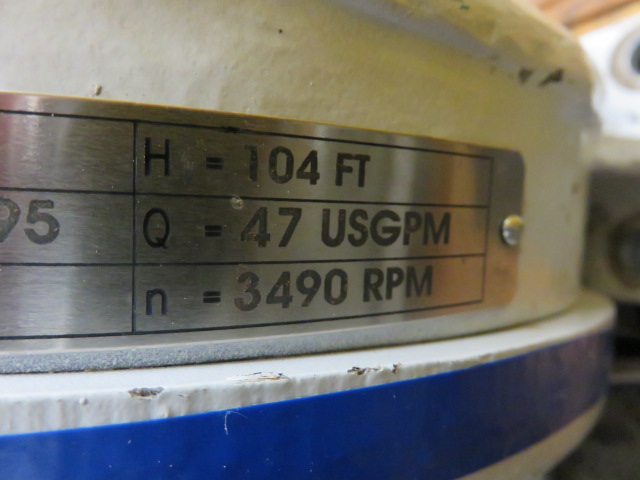 New Surplus Sulzer pump model APT 11-1A, material A890 Stainless,made in 2012, 104 ft HD, 47 usgpm, 3490 rpm, open impeller with Siemens AC Motor 7.5hp, frame 213T, 460v, 60Hz, 3520rpm.