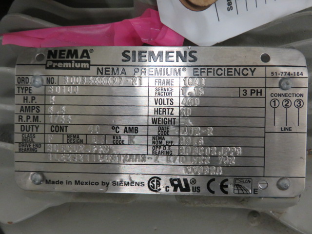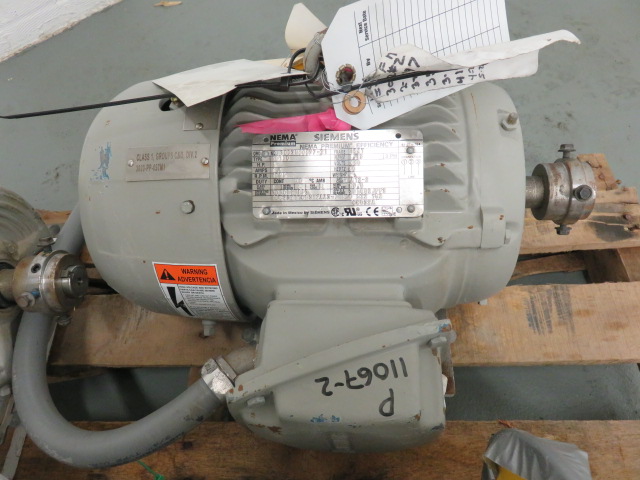 New Surplus Sulzer pump model APT 22-1A, material A890 Stainless,made in 2012, 83ft HD, 35 usgpm,1720 rpm, open impeller with Siemens AC Motor 5hp, frame 184T, 460v, 60Hz, 1755rpm.