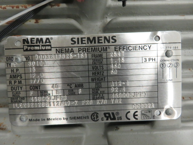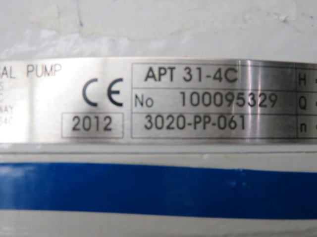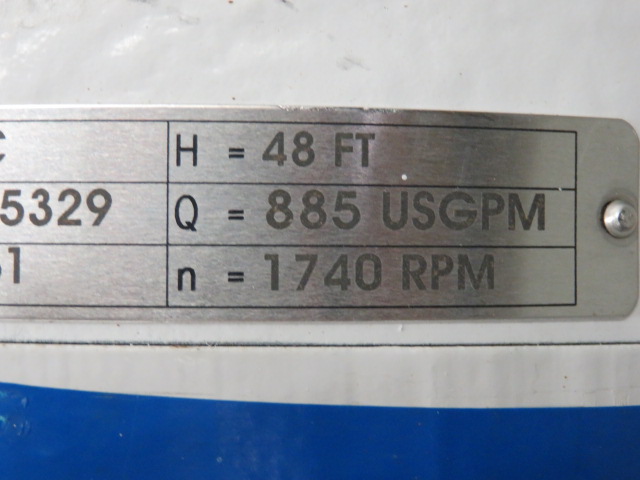 New Surplus Sulzer pump model APT 31-4C, material A890 Stainless,made in 2012, 48 ft HD, 885 usgpm, 1740 rpm, open impeller with Siemens AC Motor 15hp, frame 254T, 460v, 60Hz, 1770rpm.