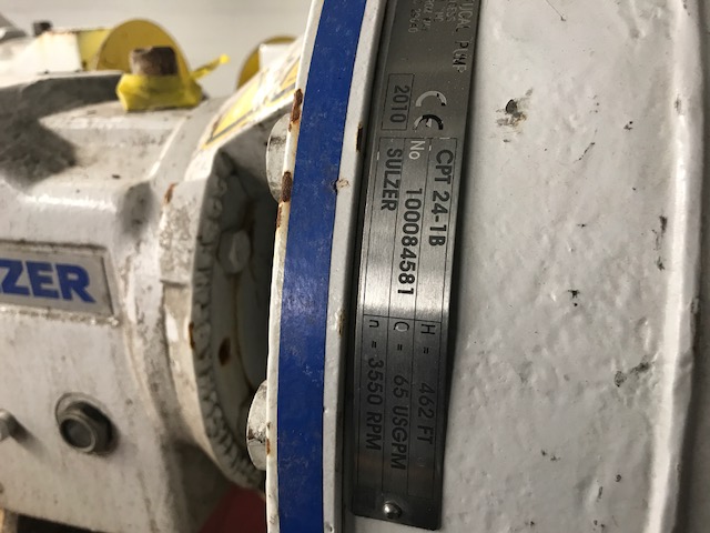 Sulzer pump model CPT 24-1B, material A890 stainless, 462 ft, 65 gpm, 3500 rpm