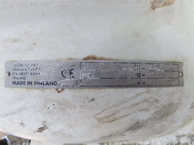 Sulzer pump model ZPP 13-250, material A890 Stainless, size 10×12, year 2000, Made in Finland