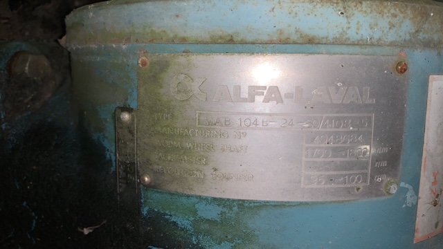 Alfa Laval Centrifugal Separator model MAB104B/24