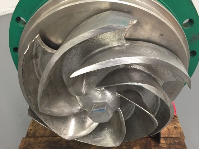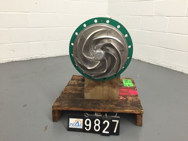 Rebuilt back pull out with impeller for Goulds 3196 XLT-X, size 13″, material 316ss, 6 vane open impeller, diameter aprox. 12″