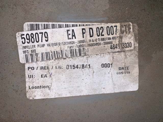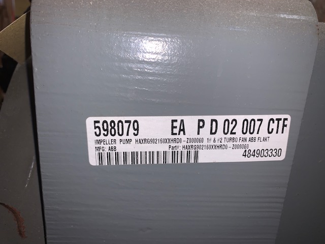 Rebuilt Storeroom Spare Back Pull Out for Turbo Fan ABB Flakt #1 and #2