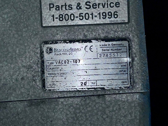 20HP Beacon Meades VAC02-107 Medical Vacuum System