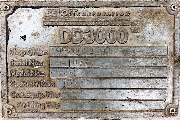 Beloit DD3000 size 34″ rotor refiner; Stainless steel lined; S/N D1877R; model No. 3234