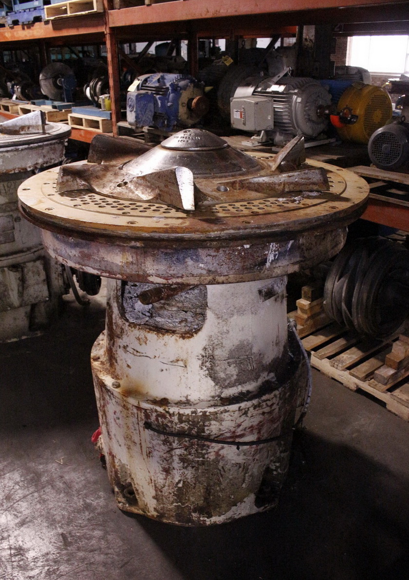 Beloit Model 350v Shark Pulper Drive, With Stainless Steel Extraction Plate, With Stainless Steel 6-Vane Rotor, 44″ Diameter Rotor, 48″ Diameter Extraction Plate, 1″ Diameter Holes, With Extraction Chamber, Ratio 3.5/1