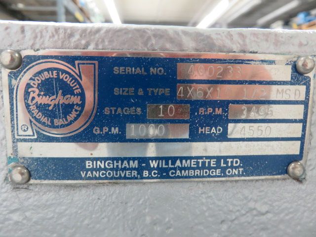 Bingham pump 4×6-10 1/2 MSD Boiler Feedwater Pump, 10 stages, 1000 gpm, 3495 rpm, 4550 ft HD, 2 pumps available