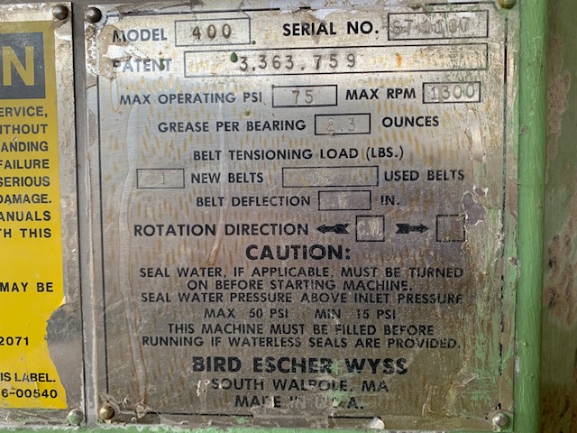 Bird 400 pressure screen with base and motor! 125hp, 1800rpm