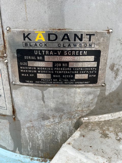 Kadant Ultra-V Pressure Screen, size UV200, stainless steel