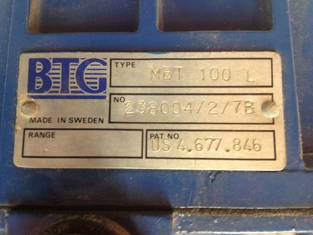 BTG model MBT-100L Consistency Transmitter, material 316 Stainless, used condition