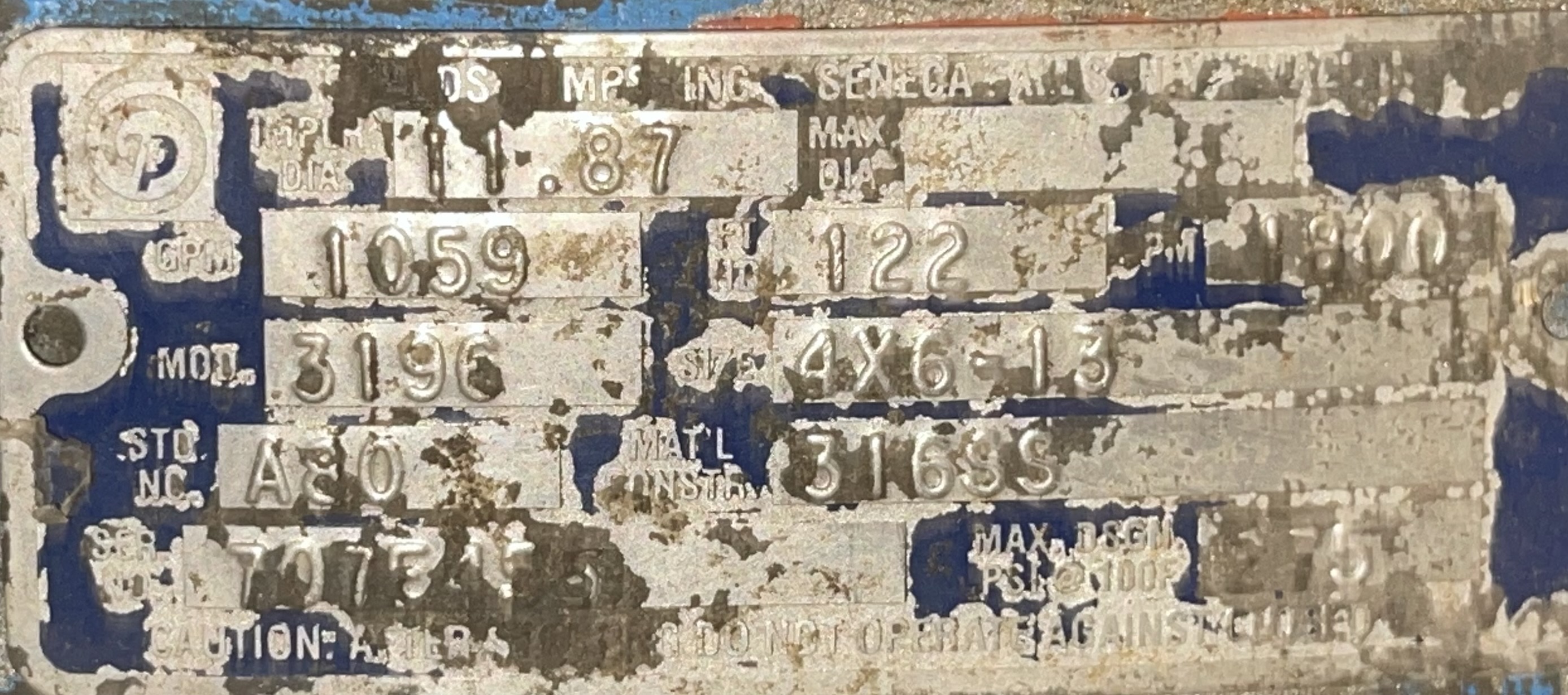 Casing / Volute for Goulds pump model 3196 , size 4x6x13, material 316ss, cast No. 68451
