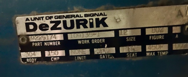 Hand Wheel Operated Dezurik Through Port 12″-150# , material 304